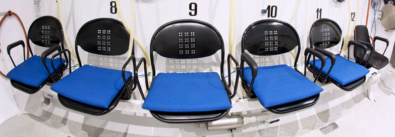Die Behandlung erfolgt mit maximalem Komfort und in vollkommener Sicherheit. Alle Vorgänge in der Druckkammer werden zusätzlich von außen von eigens ausgebildeten Technikern an einem Bildschirm überwacht und gesteuert.[/wpspoiler]